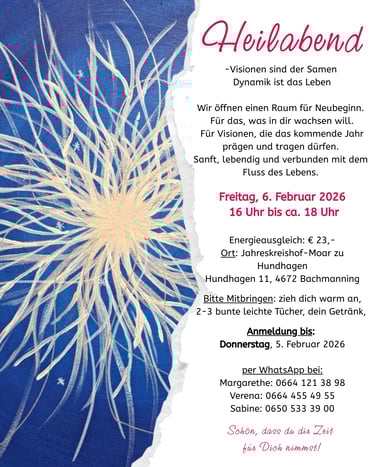 Anfang eines jeden Monat gibt es einen Heilabend bei Verena am Jahreskreishof !